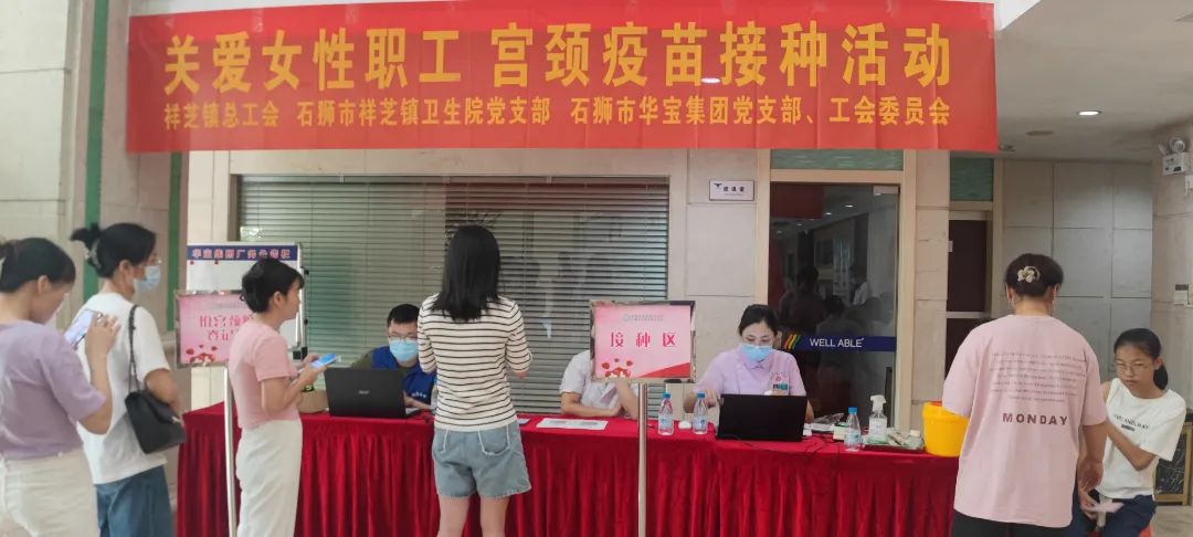 為更好地履行華寶集團黨支部和祥芝鎮衛生院黨建共建協議,落實祥芝鎮衛生院家庭醫生簽約協議,6月23日祥芝鎮衛生院為華寶集團80余位婦女職工提供2價宮頸癌疫苗上門注射服務,為華寶集團女職工的健康保駕護航,也更好地發揮華寶集團黨支部和工會關愛婦女職工作用。