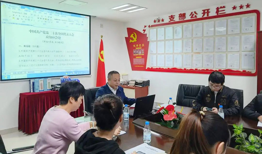 為認(rèn)真學(xué)習(xí)貫徹黨的二十大精神,檢驗(yàn)和鞏固理論學(xué)習(xí)成果,會(huì)上開(kāi)展了黨的二十大報(bào)告應(yīng)知應(yīng)會(huì)知識(shí)測(cè)試,引導(dǎo)黨員以考促學(xué)、以學(xué)促用、知行合一。支部黨員積極搶答,氣氛活躍,推動(dòng)學(xué)習(xí)貫徹黨的二十大精神往深走、往實(shí)里走。