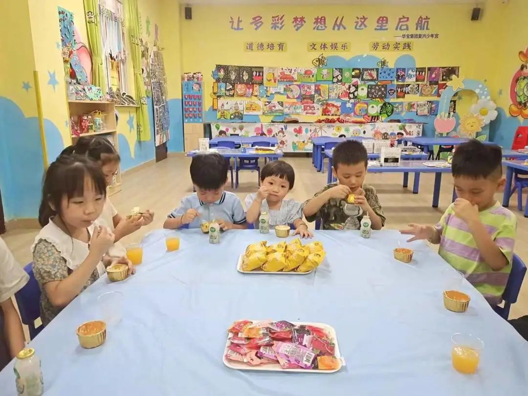 初夏時節 陽光正好,溫度適宜 在公司黨群工作部的關懷下 放暑假的職工子女“小候鳥”如期而至 在“四點半”活動中心 度過了一個愉快的假期。 如今,金風送爽,“小候鳥”即將歸巢~ 一場歡送會為小候鳥送別 期待來年再見! 01 快樂聚餐 五位即將返程的“小候鳥”與“四點半”活動中心的其他小朋友聚在一起,開心地享用下午茶,感受伙伴們的熱情與陪伴,訴說著不舍與道別......
